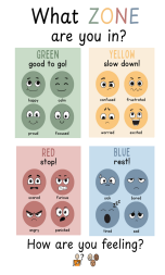 We work with children in all classes using an intervention designed to give them a concrete way of identifying their emotions and strategies for self-regulation. These are called 'Zones of Regulation'.